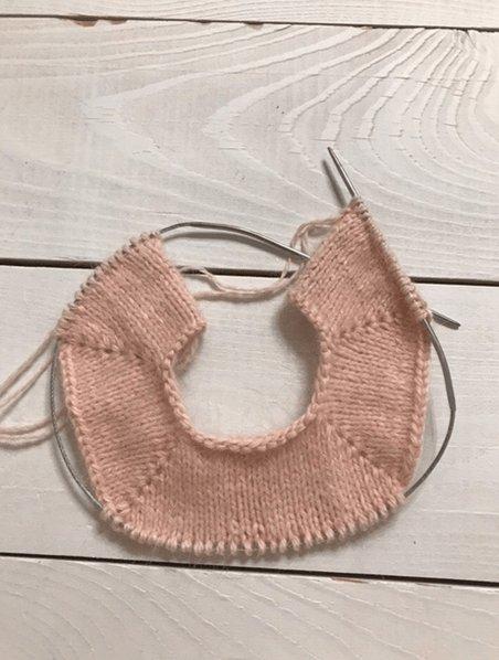 1 ряд: кр, 7 лиц, прибавка (регланная линия) обратите внимание на видео 1 как я ее провязываю, 4 лиц, приб, 12 лиц, приб, 4 лиц, приб, 7 лиц, кр