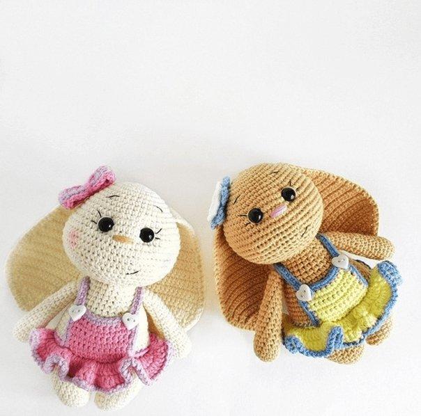 Осталось связать зайке бантик или цветочек, как сделала я во втором варианте.