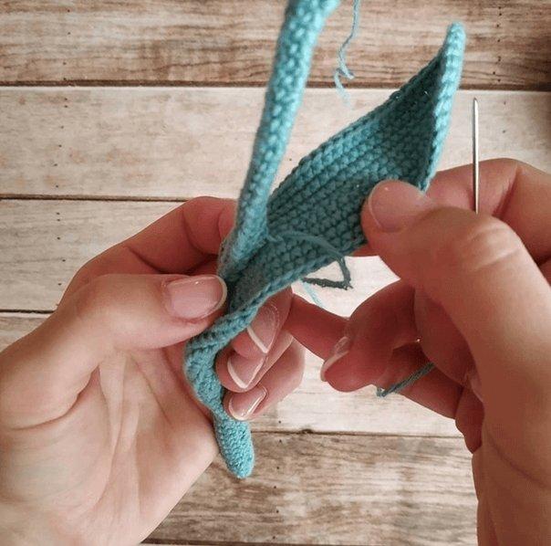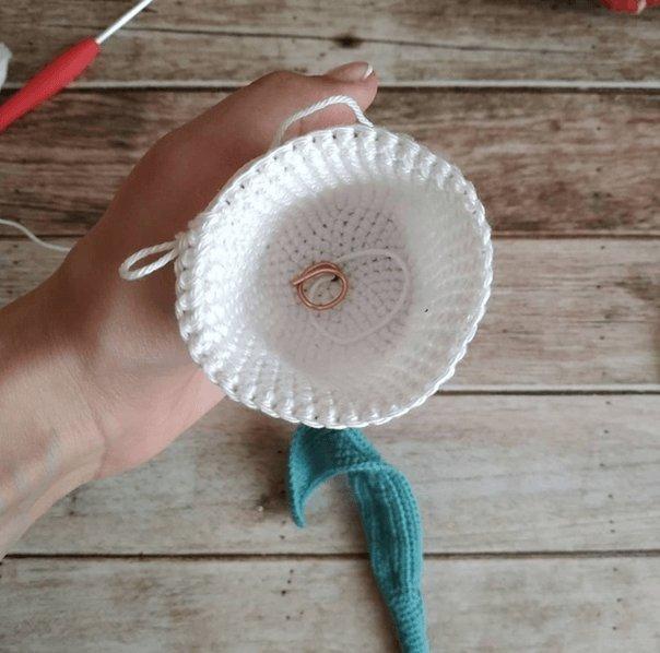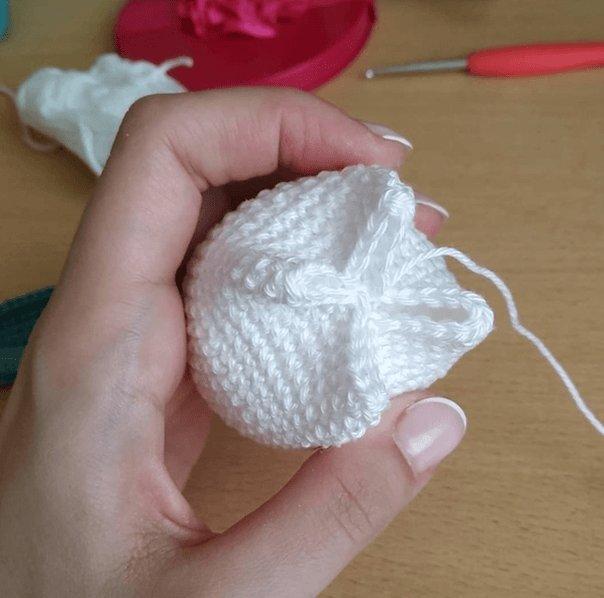 4 ряд: 64 сбн, сс. Оставьте конец нити длиной 40-50 см для сшивания.