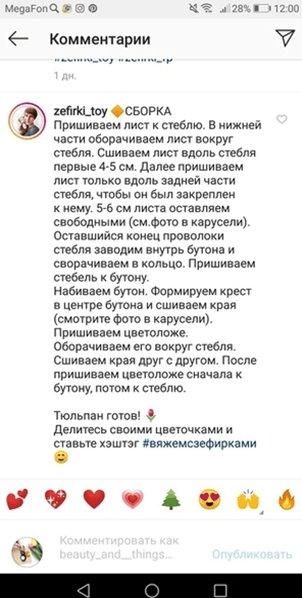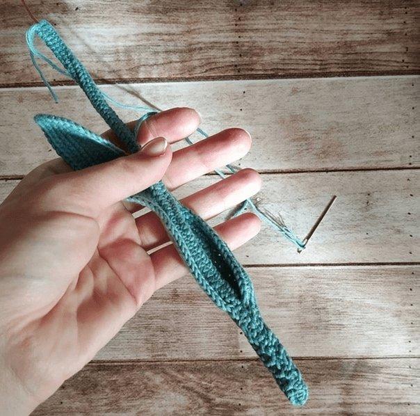 Оставляем конец нити длиной 30 см для пришивания листа к стеблю.