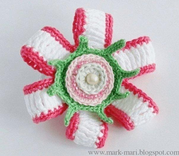 Наверное, многие из нас кусочек выходного посвятят сборам своей дочки в школу. Это занятие можно дополнить также и подготовкой нового украшения Представляю вам новый цветочек из школьного проекта