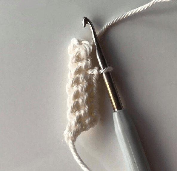 2) 4 сбн, 1 сс (провязывается как обычно), 1 вп.