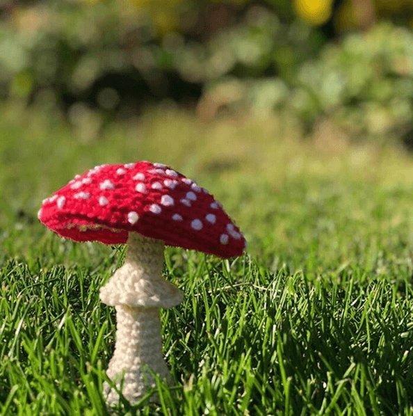 Петлю закрыть, нить обрезать и спрятать. Украсить шляпку имитацией белых точек. Для этого можно пришить бусины или сделать вышивку, например французскими узелками.