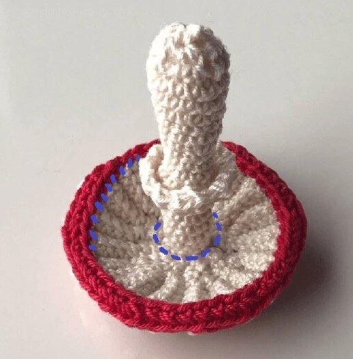Шляпка вяжется нитью красного цвета за правую часть петли.