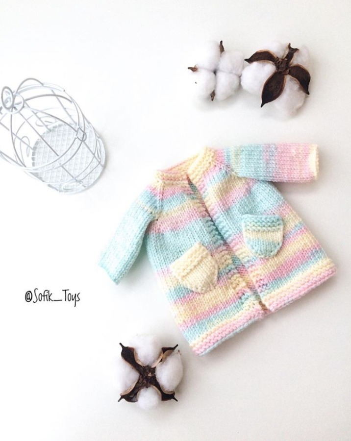 Начало вязания тоже, что и у кофты с лентой. Немного добавила прибавок под рукавами и карманы, и вот вам новый вариант