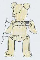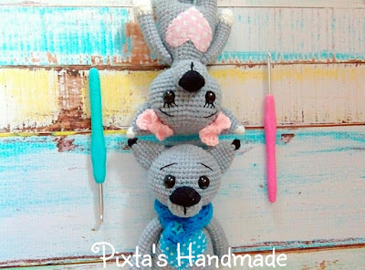 4. (2сбн, пр)*3 = 125. 12 сбн6. (3сбн, пр)*3 = 15 Сменить цвет на серный 7. (4сбн, пр)*3 = 188-11. 18 сбн (4 ряда) 12. (4сбн, уб)*3 = 1513-14. 15 сбн (2 ряда) 15. (3сбн, уб)*3 = 1216. 12 сбн 17. (2сбн, уб)*3 = 918-20. 9 сбн (3 ряда) Хвостик набить, сложить края, провязать сбн и пришить сзади между ножек на уровне 12-14 ряда (где Вам больше понравится).