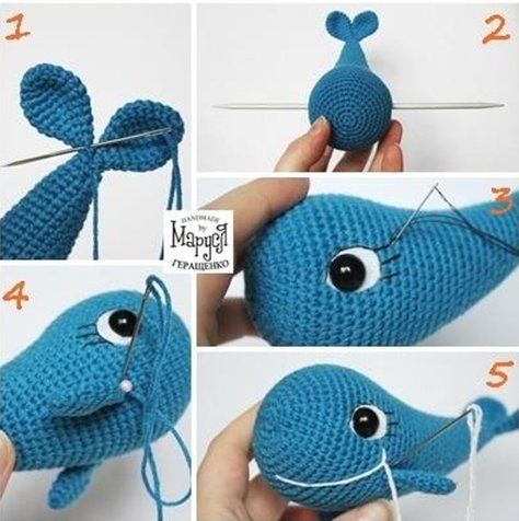 Киты — мощный символ основ мироздания. Помните троицу, что по древним поверьям держала на своих спинах Землю? А теперь для нас три главных кита — семья, любовь и верность. Свяжите себе или в подарок парочку китов от Маруси Геращенко.