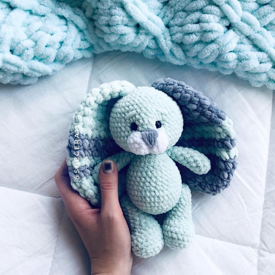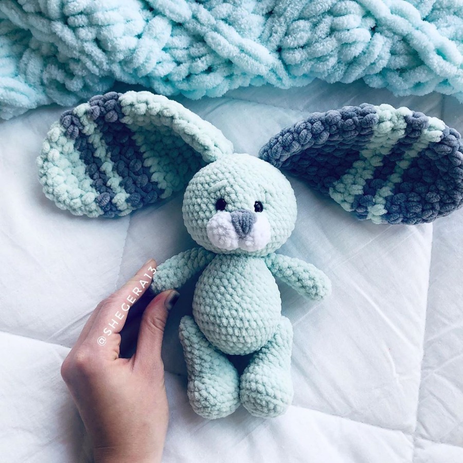 Очаровательный плюшевый зайчик амигуруми от @shegera13. Игрушка вяжется столбиками без накида, а ушки полустолбиками с накидом.