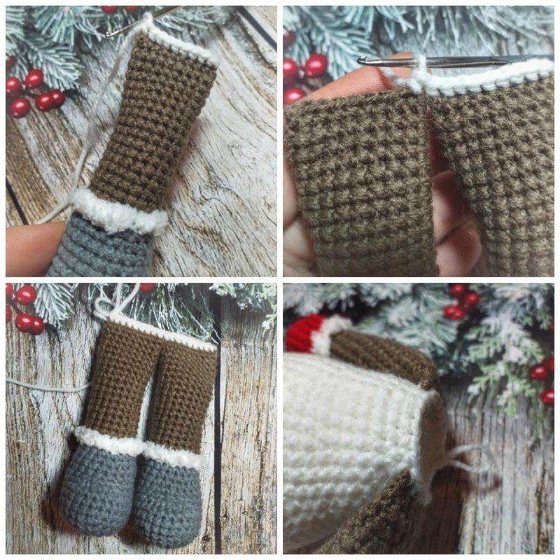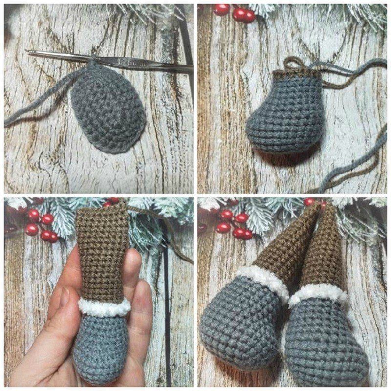 Присоединяем нить белого цвета к ножке, носочки смотрят на вас.