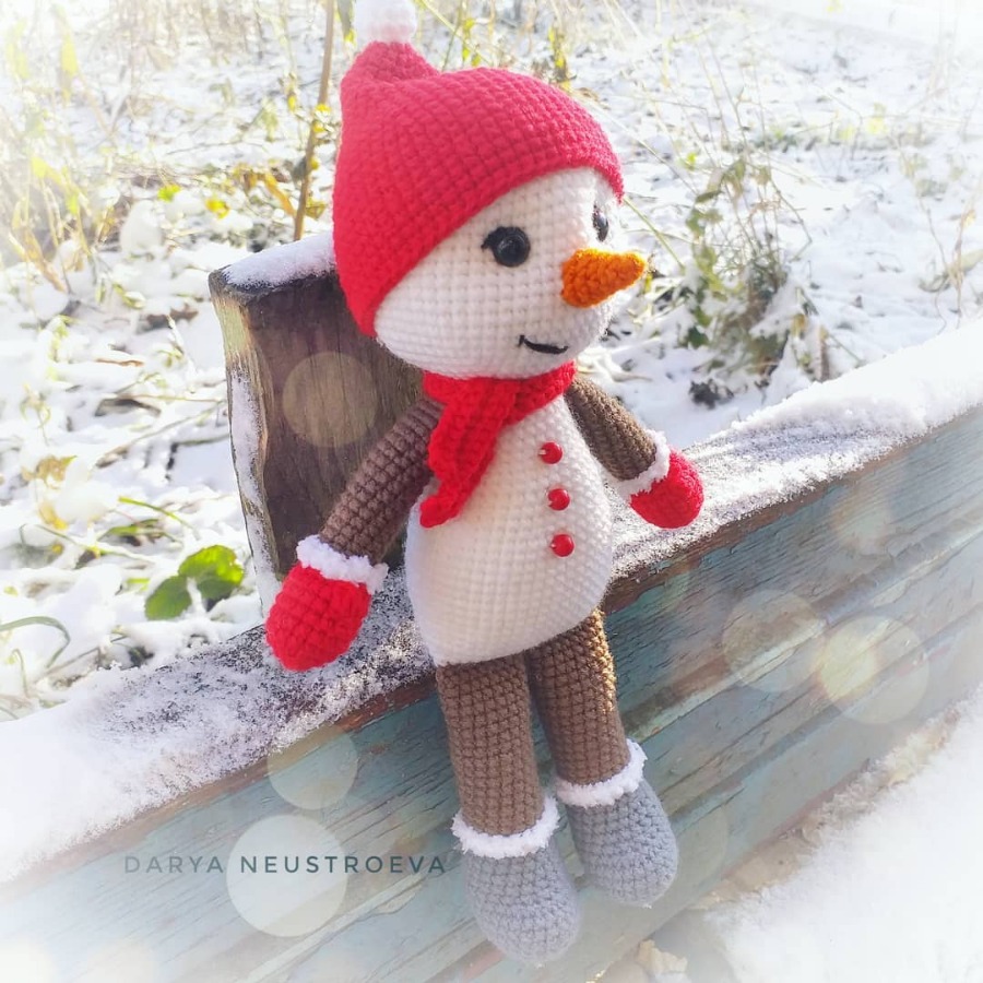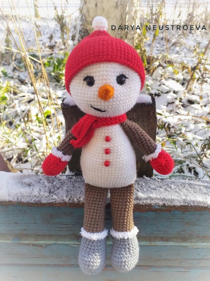 Предлагаем мастер-класс по вязанию снеговика амигуруми от Дарьи Неустроевой. Из мастер-класса Вы узнаете, как связать снеговика крючком, а также шапочку и шарфик для него. Для работы понадобится крючок 1.75 мм и акриловая пряжа Пехорка «Детская новинка». Для «меховой» оборки на рукавичках и сапожках возьмите белую пряжу Alize Softy.