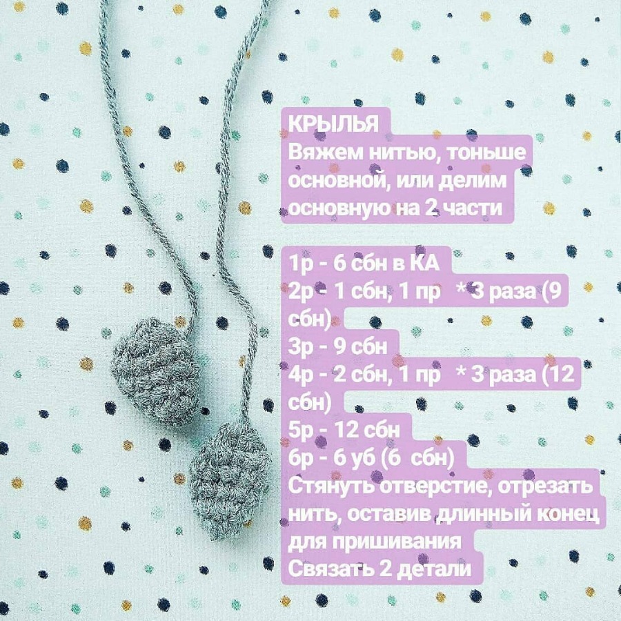 КРЫЛЬЯ ВЯЖЕМ ОСНОВНОЙ НИТЬЮ, НЕ ДЕЛИМ ПОПОЛАМ!!! (Небольшая ошибка в описании)