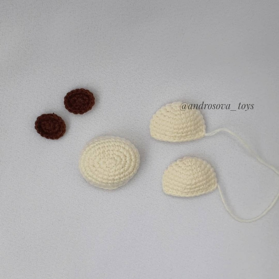 Мордочку пришиваем к голове между 21 и 31 рядами, в ходе пришивания наполняем мордочку наполнителем.