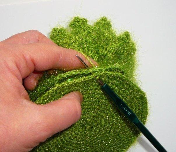 5 ряд – 3 воздушные петли, *ССН, ССН, 2ССН в следующую петлю * так и чередовать и затем ССН в ту же петлю, откуда 3 воздушные петли и соединить => 28 ССН.
