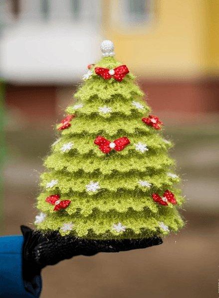 Пропускаем 2 ряда основания конуса и на третьем начинаем снова вязать веточки.