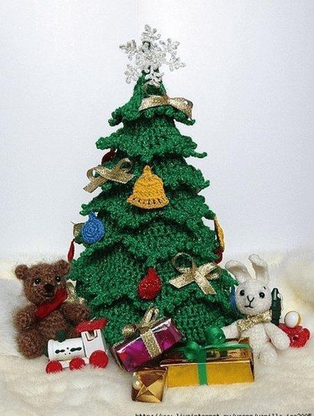 Выкладываю примерное описаниие елочки, точное не могу, вязала на глаз, а по готовому изделию уже трудно все сосчитать :)
